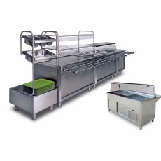 We make the self-service line according to our buyer's design and requests. The line includes warm and cold line elements, neutral elements, cash register elements, holders for utensils and containers, sliding shelves, bearings...